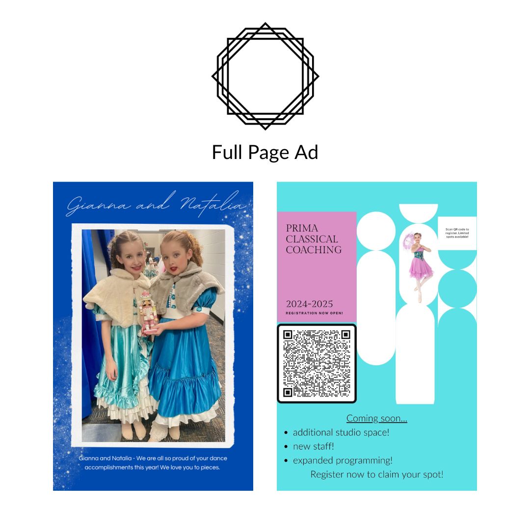 Promote your business or celebrate your dancer with a full page ad in our production program!