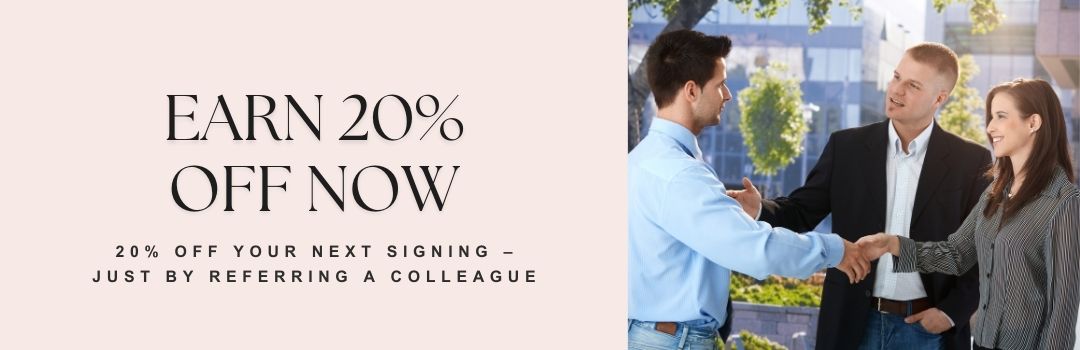 When you refer another law firm to us and they complete their first signing, you’ll receive 20% off your next signing order. Please complete this quick form to submit your referral.